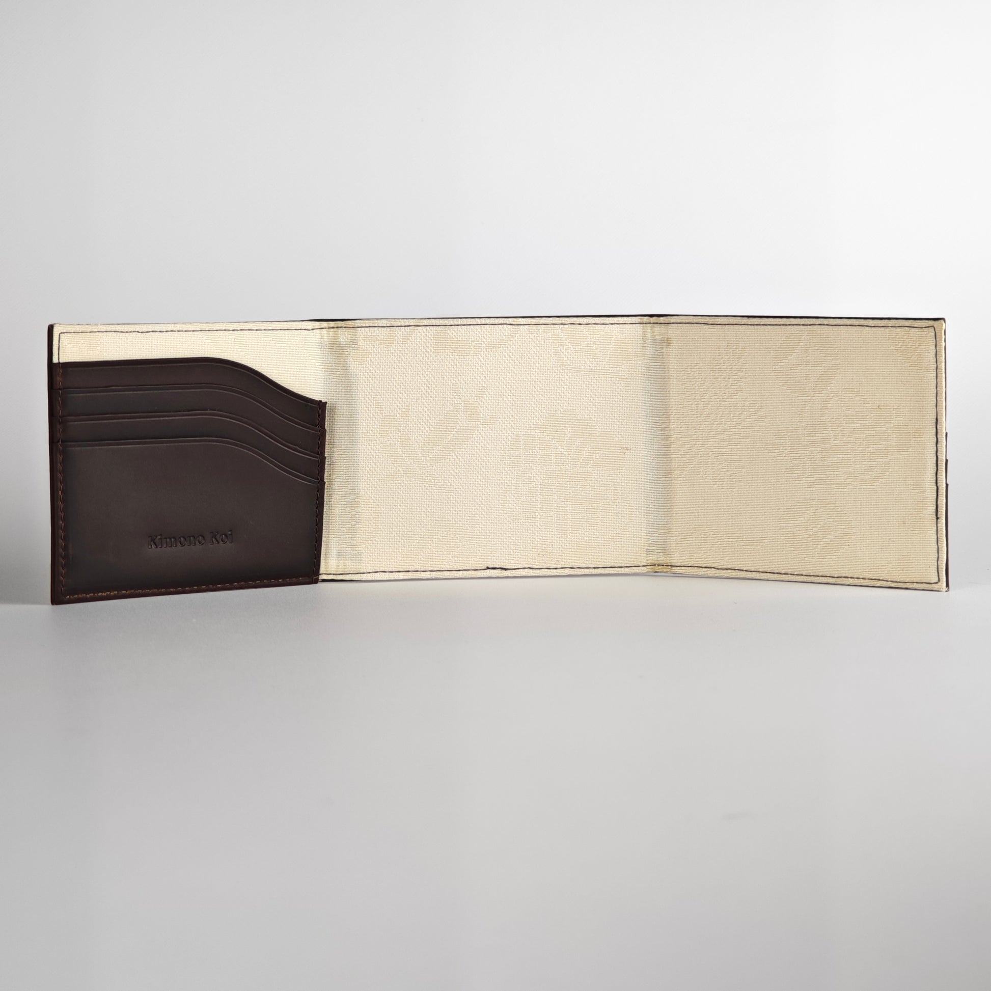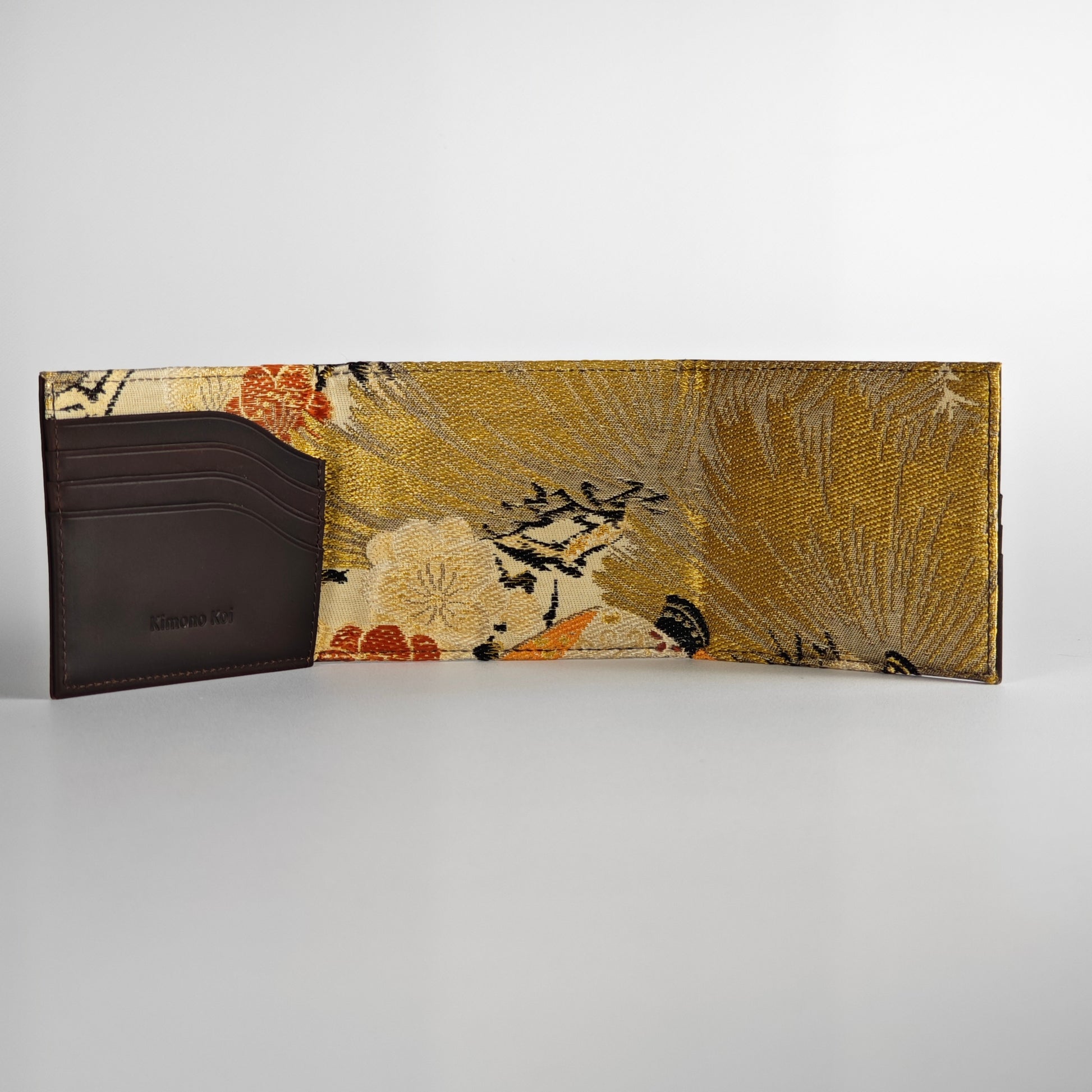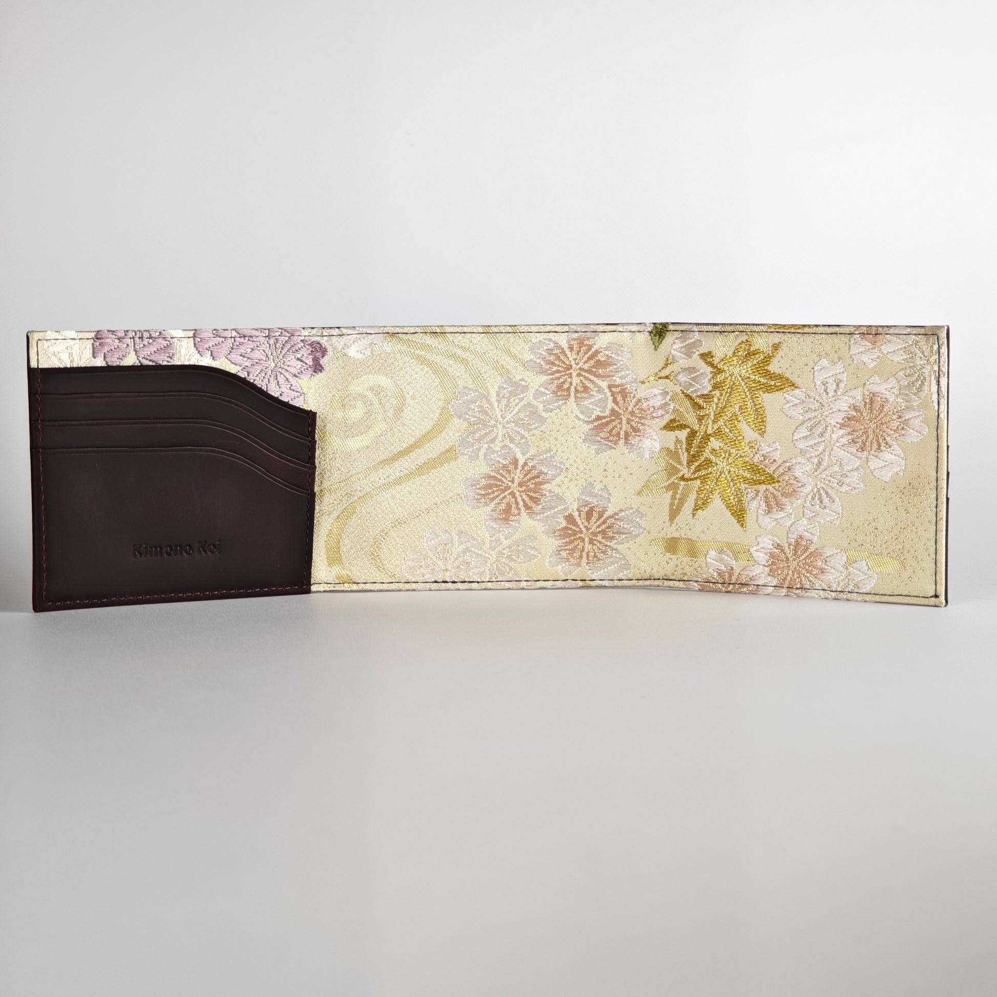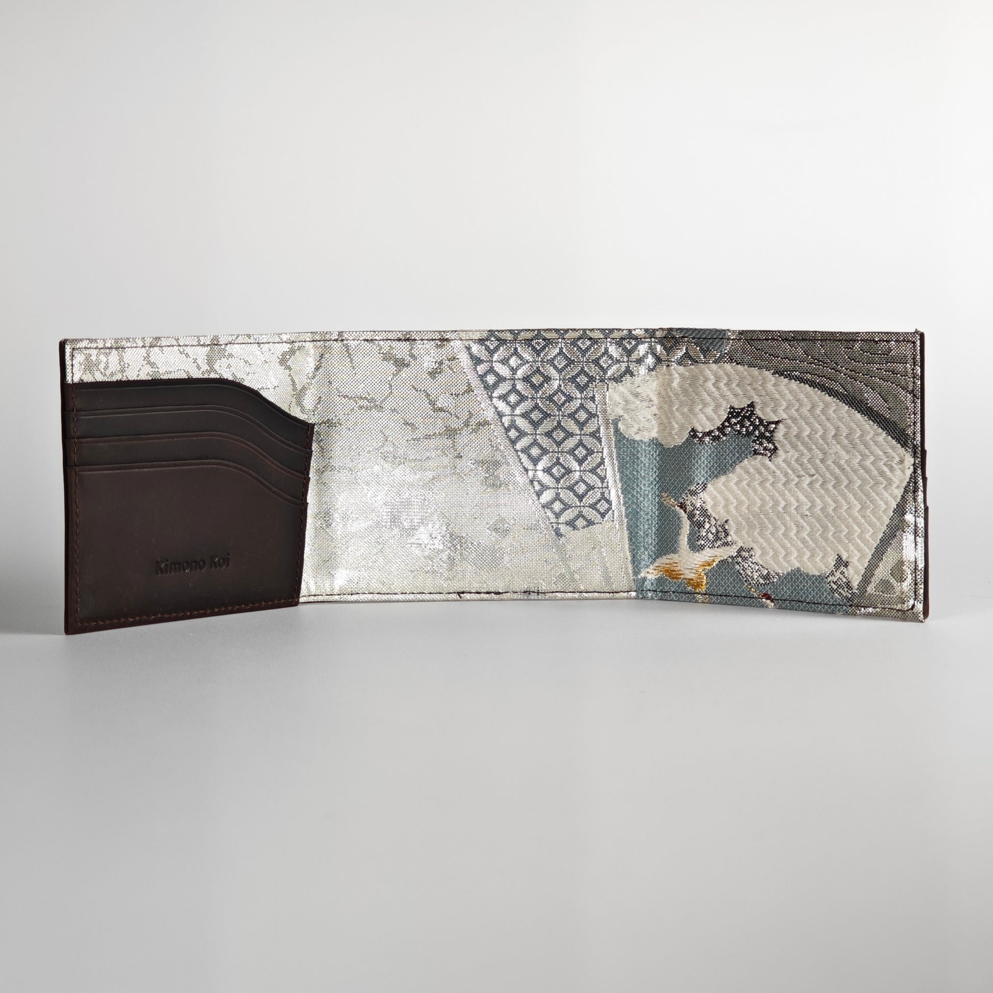 The interior structure uses high-quality leather for durability and a refined finish. Multiple card slots, smooth edges, and reinforced bill compartments ensure daily functionality without compromising on elegance. The contrast between the understated leather exterior and the richly detailed silk interior reflects the Japanese aesthetic principle of subtle beauty revealed over time.